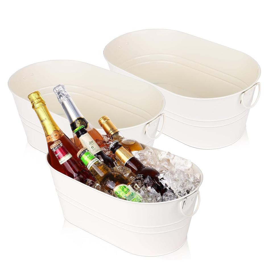 White Coated Galvanized Wine Bottle Cooler Ice Bucket With Handle for Party and Wedding Celebrations Metal Wine Cooler