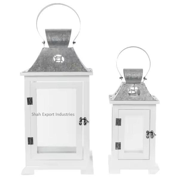 White Coated iron Galvanized and Clear Glass Candle Lantern For Outdoor and Indoor Decor Available in Low Prices