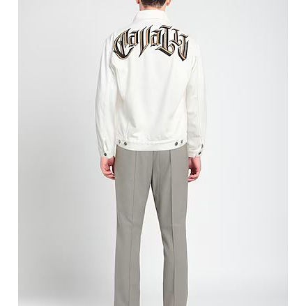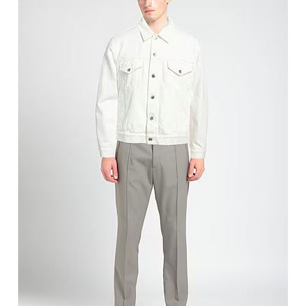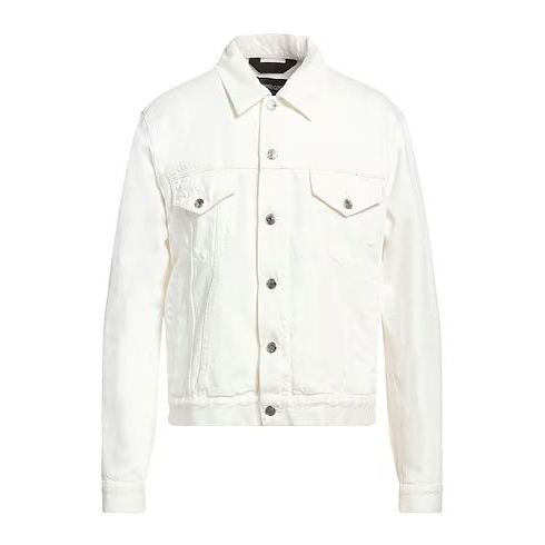White Color 100% Cotton Coated Denim Jacket Men's Front Pockets Decoration Covered Button Closure High Street Fashion