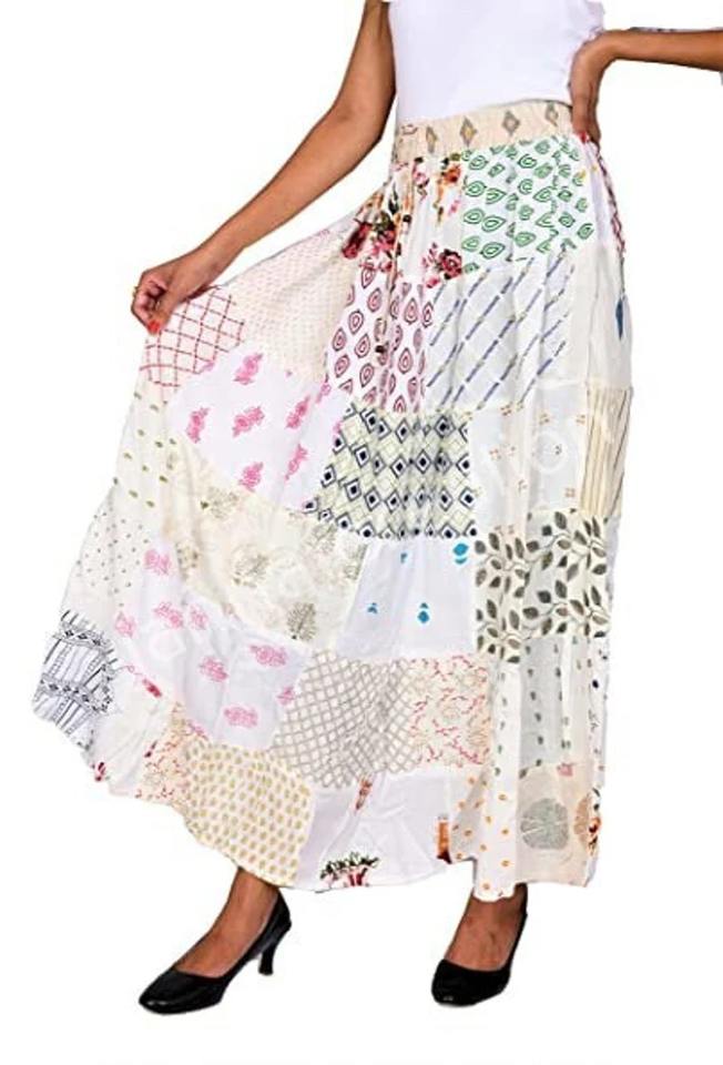 Printed New Design White Color Boho Patchwork Skirt Boho Hippie Summer Skirt Patchwork Skirt for Women