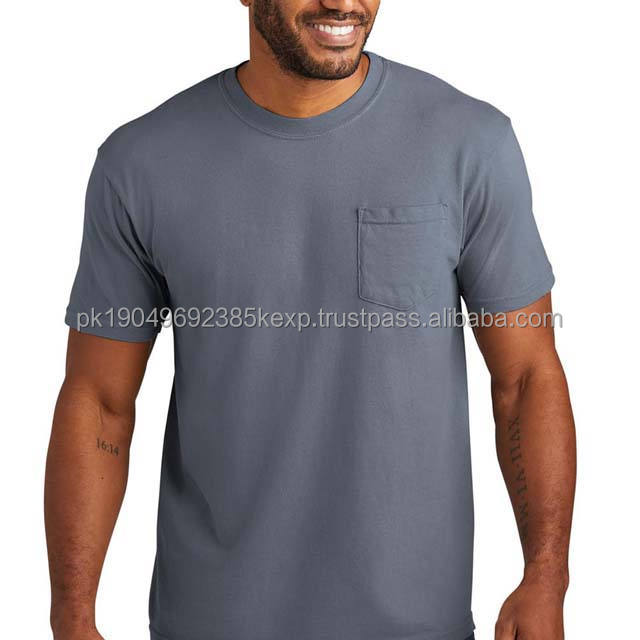 White Color Men's Clothing T Shirts With Pocket Crewneck Short Sleeve Regular Fit Summer Casual Style Cotton Men T Shirts