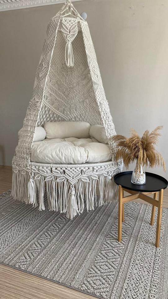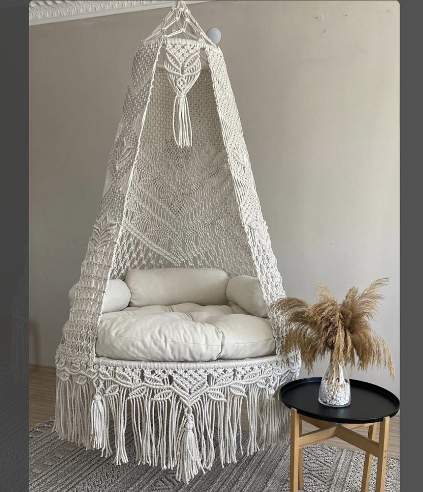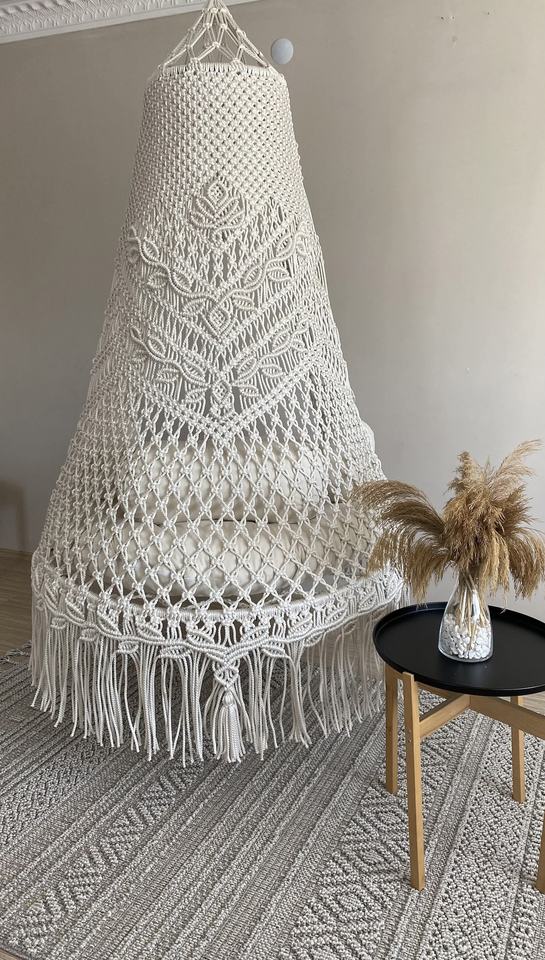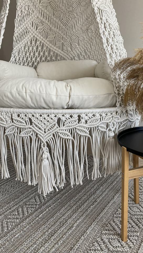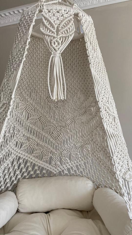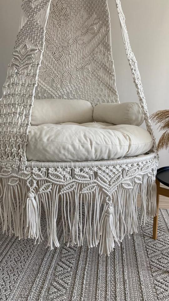 White Color Modern Design Macrame Large Hammock Chair Boho Style Hand Woven Adult Large Swing Chair for Living Room and Patio