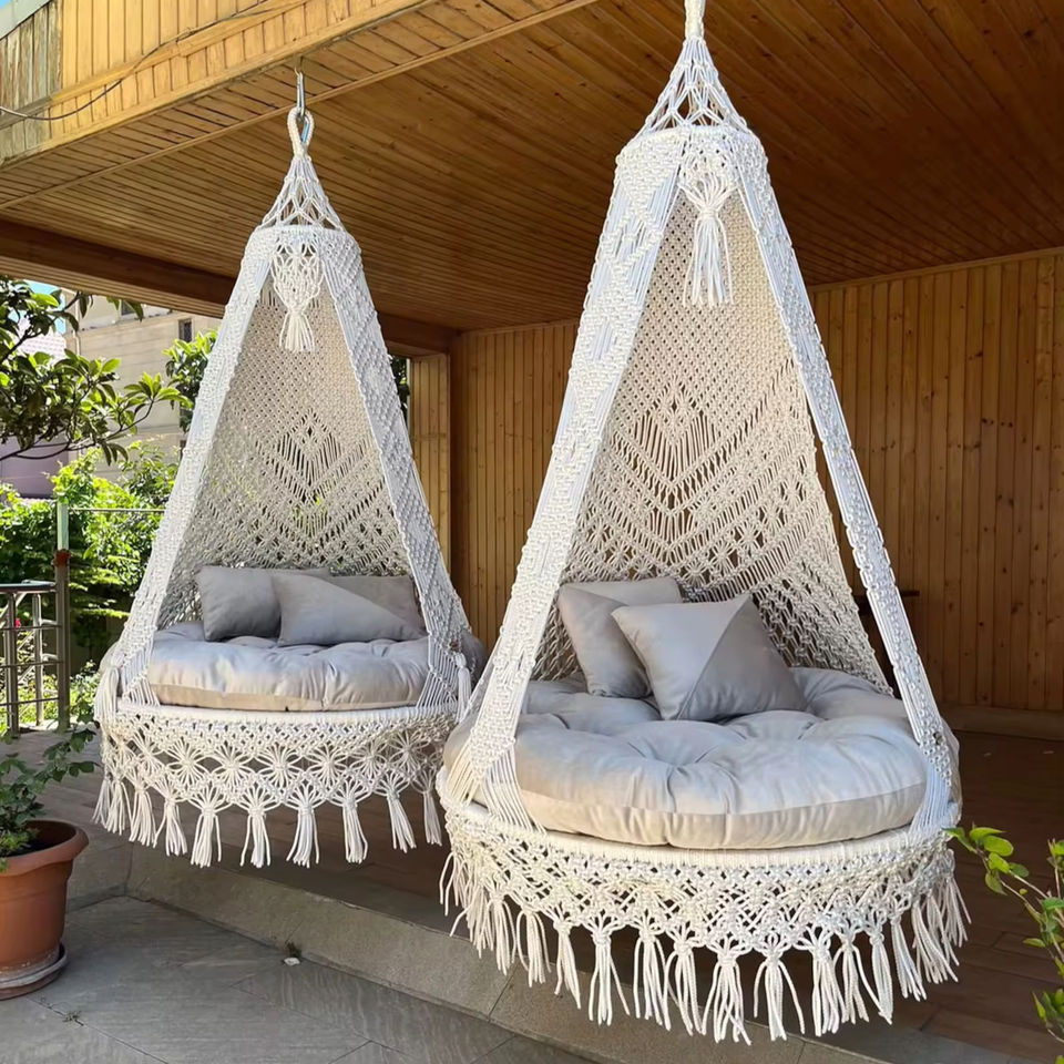 White Color New Design Macrame Large Hammock Chair Boho Style Hand Woven Adult Large Swing Chair for Living Room and Patio