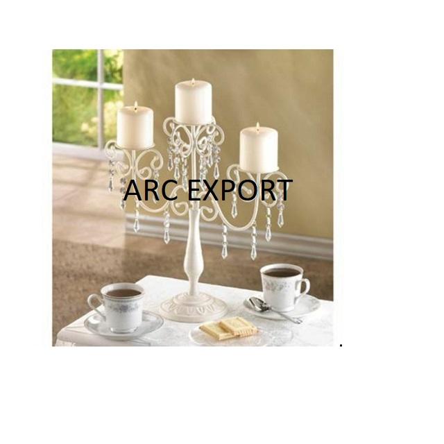 Metal Candelabra White Color Powder Coated Standard With Hanging Crystal Ware Decoration Fancy New Stylish Modern Designer