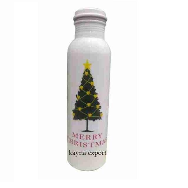 White Copper Water Bottles Christmas Tree Print Eco-Friendly Food Safe Cover for Office Travel Use Business Gift Tabletop