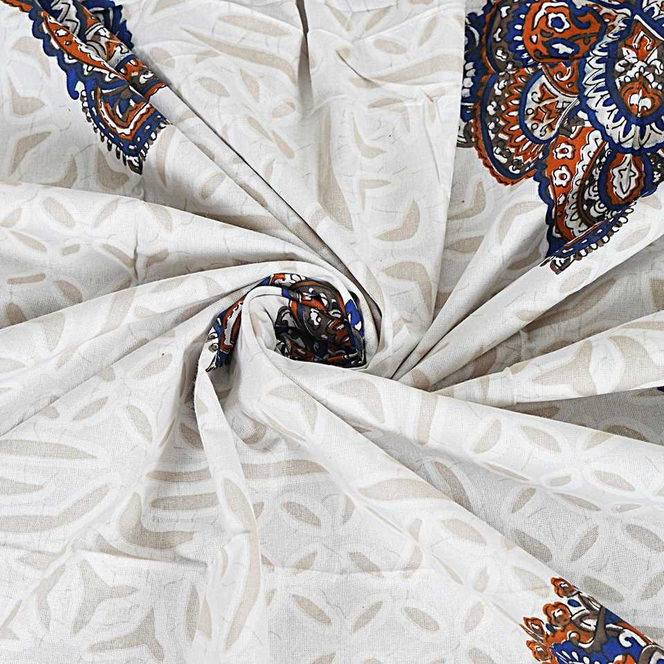 White Cotton 240 TC Jaipuri Print Double Bedsheet with 2 Pillow Covers 6-Piece Set Fitted Flat Bed Sheets (ADB1389)