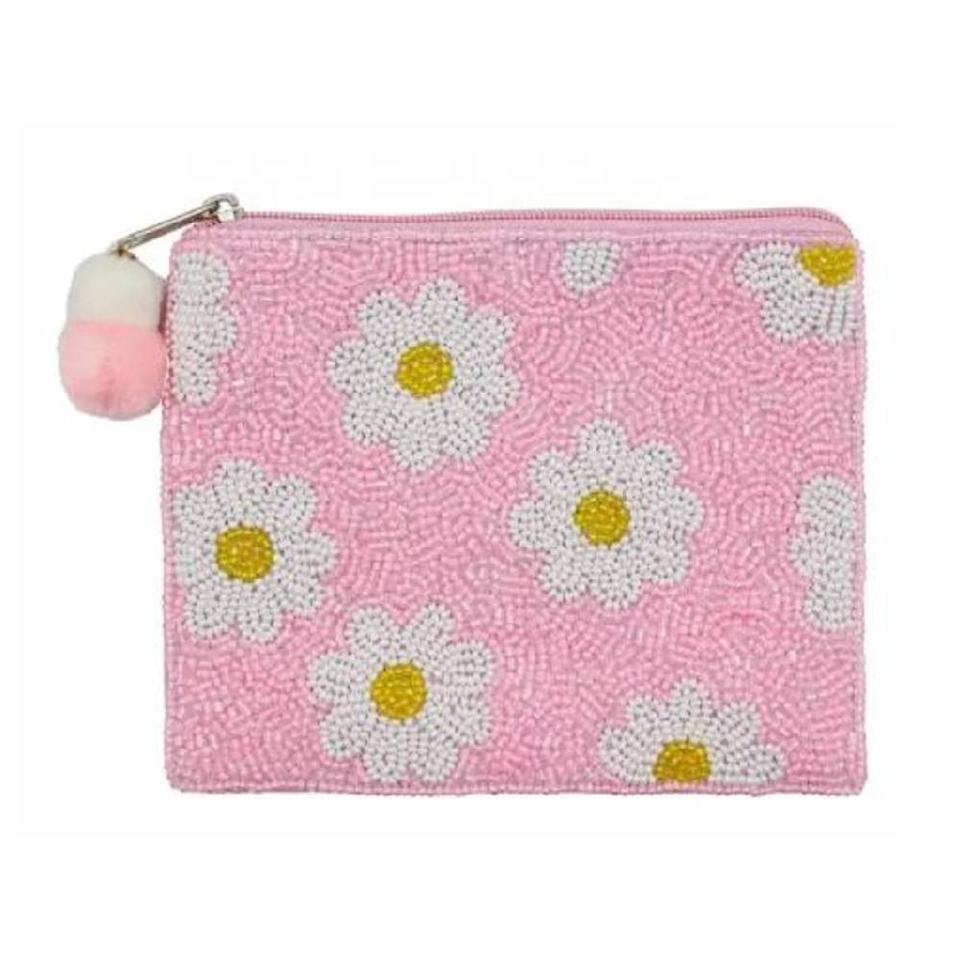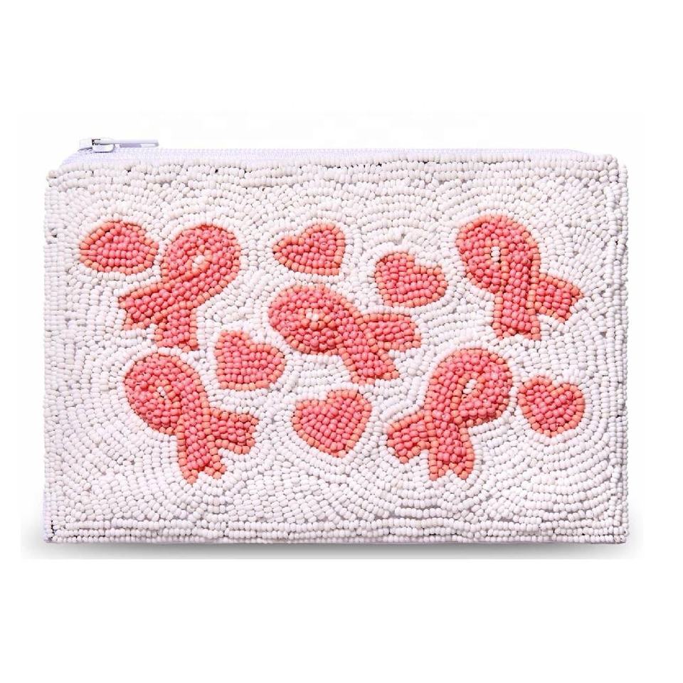 White Cotton Fabric Coin Purse for Heart Ribbon Design Eco-Friendly Zipper Closure Multi-Functional Mini Pouch for Coins Cards