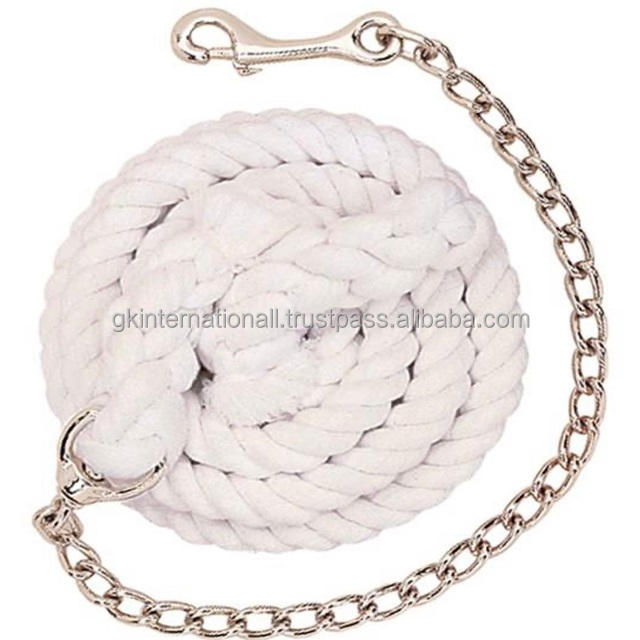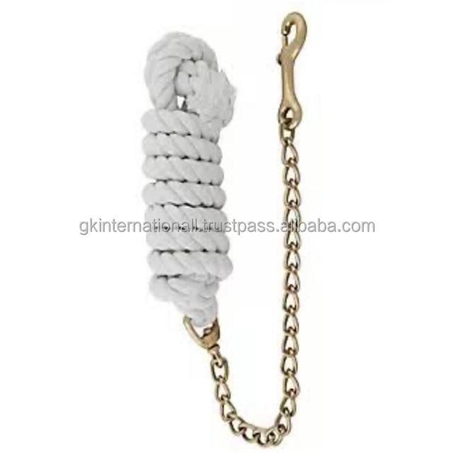 White Cotton PP Durable Horse Lead Rope with Heavy Duty Brass Chain and Snap Leap Rope Horse