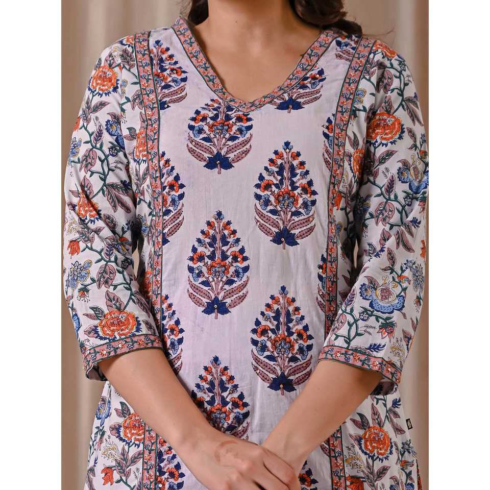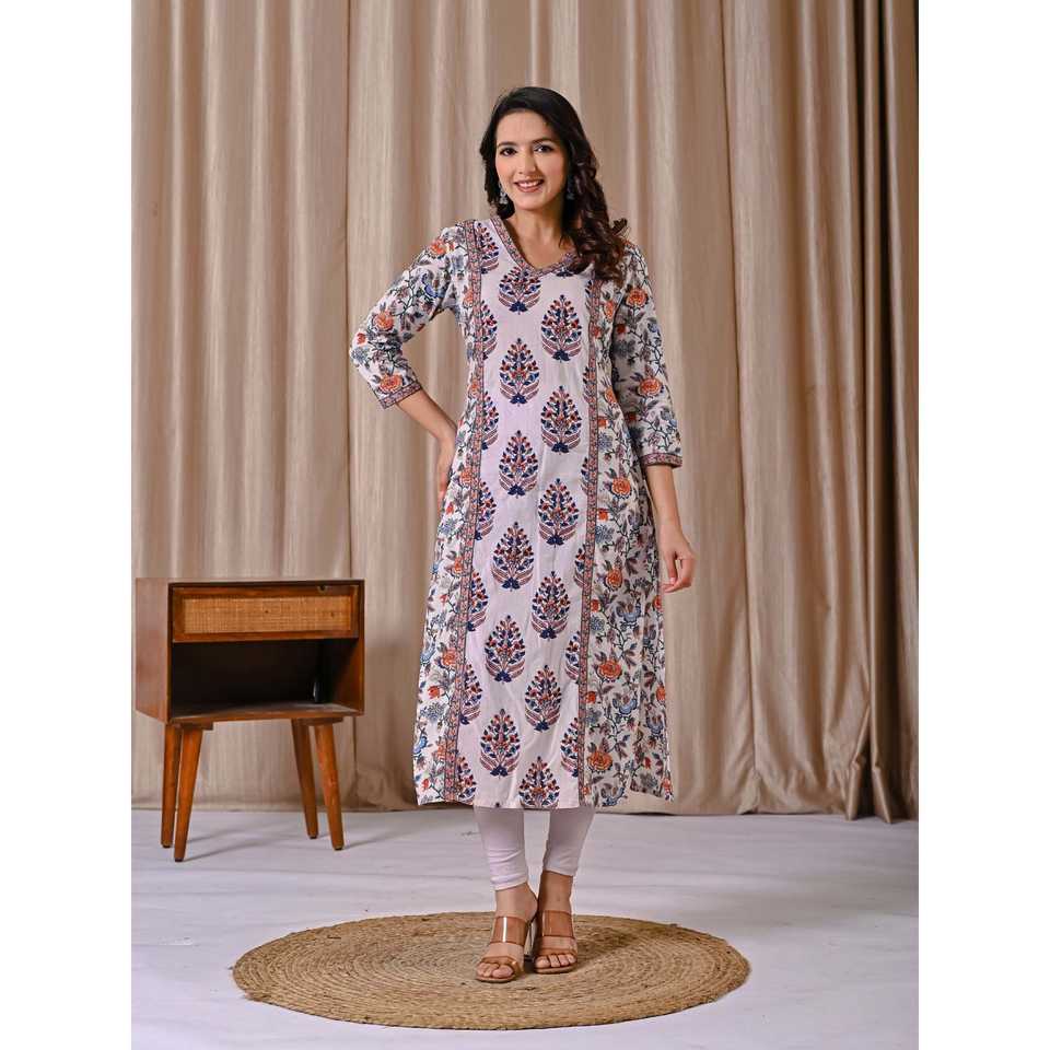 White Cotton Straight Fit Kurti Butta Block Print Ethnic Indian Dress for Women Pakistani Styled Saree Salwar Kameez Stitched