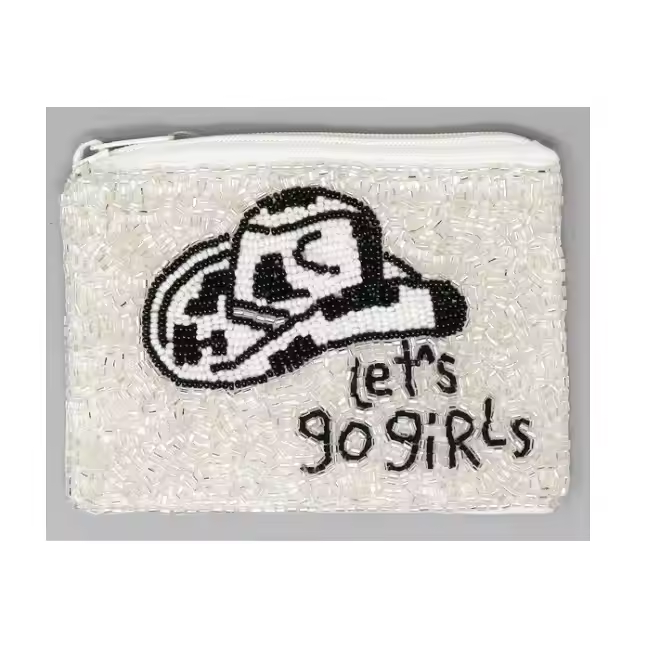 White Cowgirl Hat beaded coin pouch white black and silver beautiful embroidery coin purse from India for women and girls