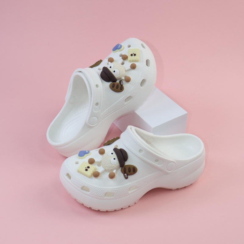 White Crocs Clogs With Cartoon Charms Thick Sole 3cm Heel For Women Outdoor Wear Summer Fashion Casual Shoes
