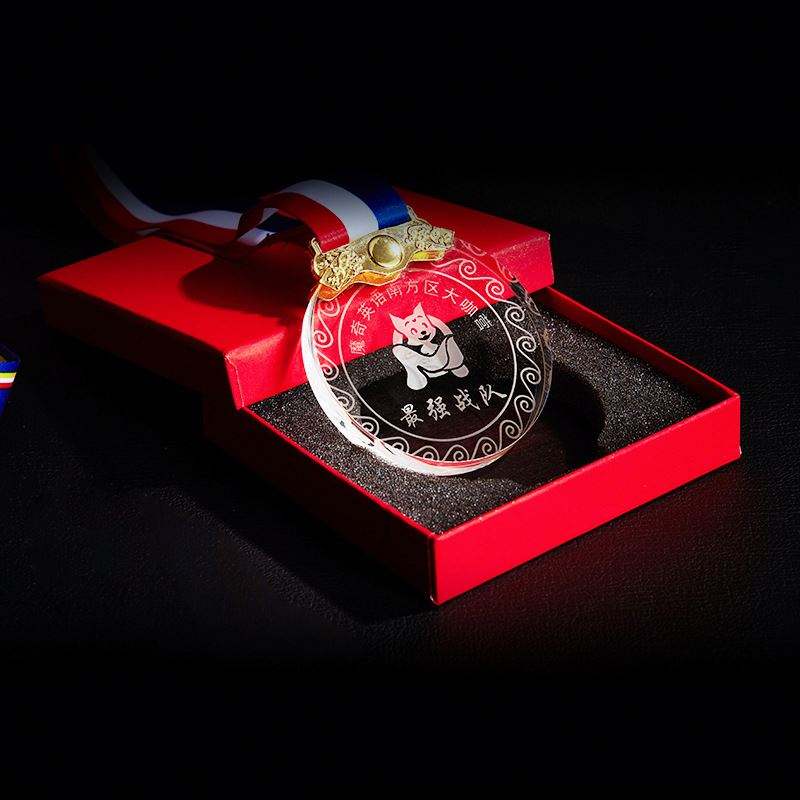 White Crystal Gift Box Medal Listing Company Annual Meeting School Sports Meeting Gold Silver Copper Enterprise Award