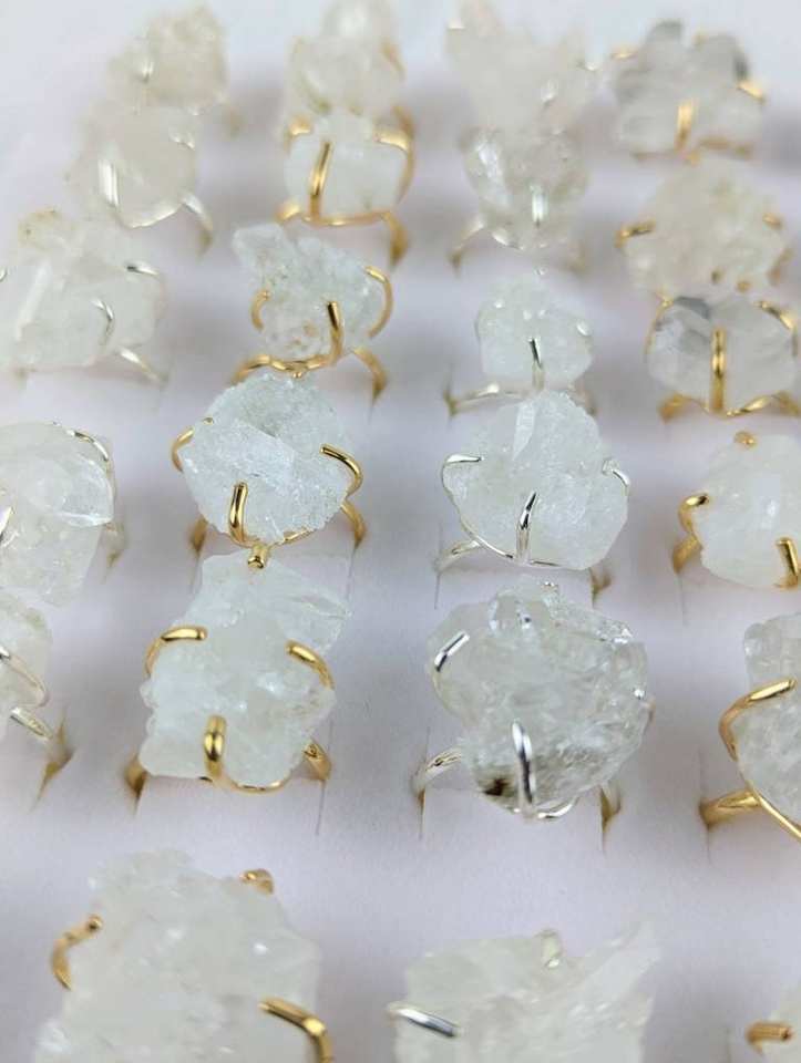 Adjustable Row Ring Natural White Crystal Quartz Gemstone Ring for Party Factory Price Women's Gift