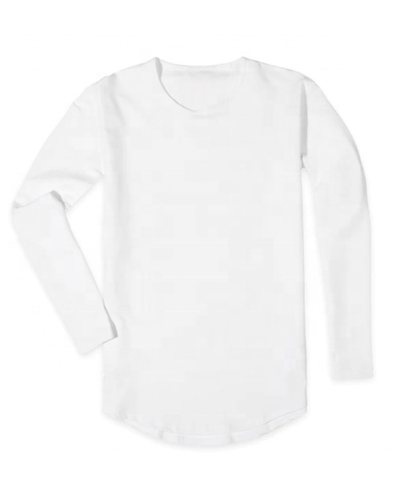 White Curve Hem Tee Shirts Blank Graphic T-shirt Men Long Sleeve 260GSM Custom Made High Quality Turtleneck Vintage Eco-Friendly