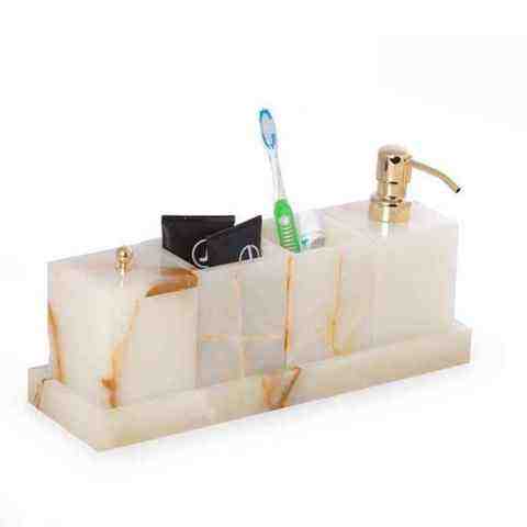 White Decorative Resin Bathroom Accessories Set Rectangle Shape Easy-to-Clean Home Spa Bathroom Look
