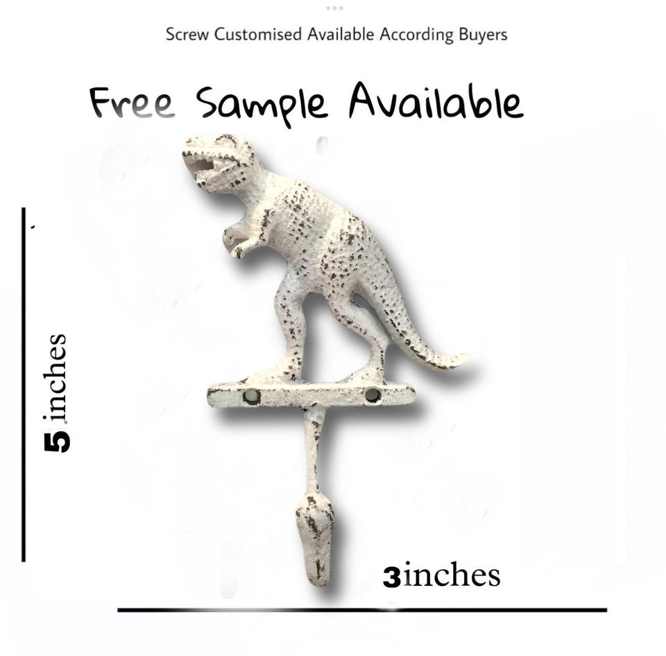 Wholesale Cast Iron T-Rex Dinosaur Keychain Hanger Distressed White Wall Coat & Hat Hooks Very Cheap for Clothing Use