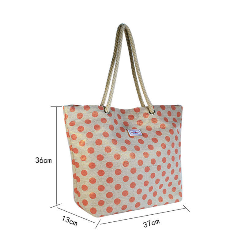White Dot Printed Wholesale Selling Custom Size Classic Lam Dyed Leather Handle Jute Bags for Women's From Trusted Seller