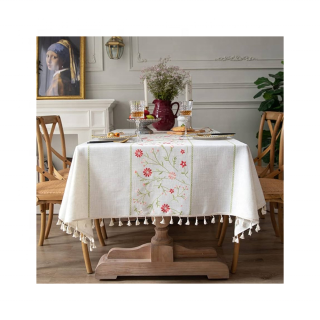 White Eco-Friendly GOTS Certified 100% Cotton Embroidered Tablecloth 60x84 Inches Ideal for Elegant Dining Experiences at Home