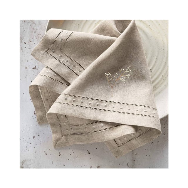 White Embroidered 100% Cotton Golf Design Abstract 45x45cm 150 GSM Custom Logo OEM ODM Biodegradable Sustainable Cotton Napkins