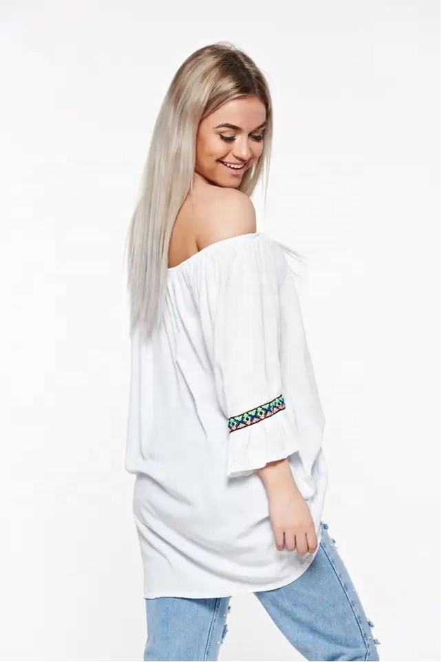 White Embroidered Full Sleeves Blouse With Slash Neck Design Shirt Type Top for Women Daily Wear Summer Party Favour