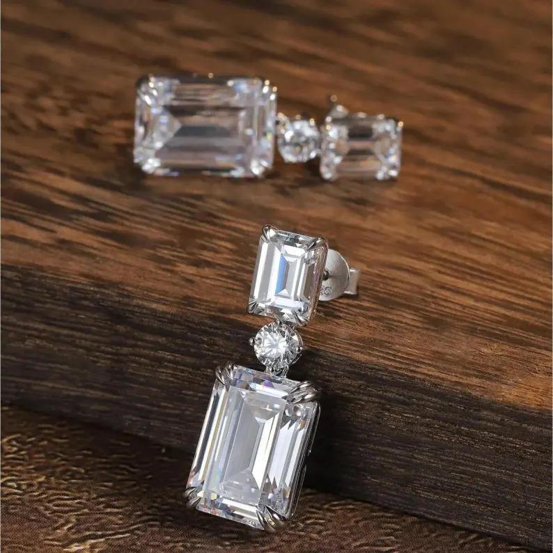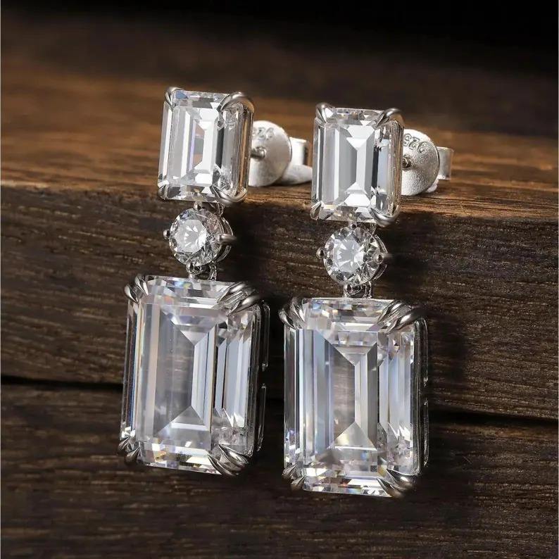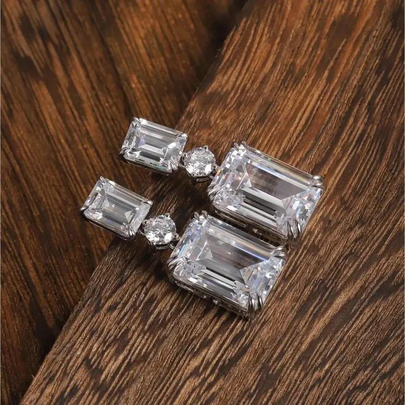 White Emerald Moissanite Diamond earrings Round Shape Diamond Cut Shape Gift For Her