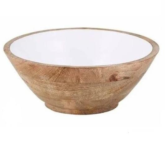 White Enamel Finishing Wooden Bowl for Hot Selling Deep Fruit Serving Bowl For Dining Table Top Decorative Food Server Bowl