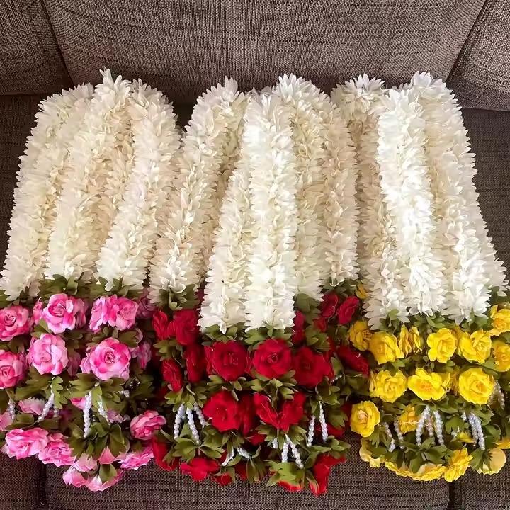 White Fabric Jasmine Flower Garland With Rose Flower Diwali Festival Floral Pearl String Ceiling Decor Backdrop Birthday Decor