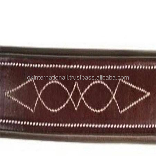 White Fancy Stitching Customized Handmade Padded Brown Leather Dog Collar with Nickel Plated Buckle and D Ring at Wholesale