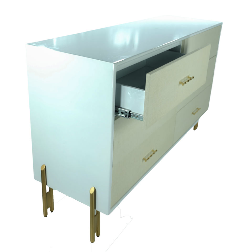 White Faux Shagreen Living Room Cabinet 6 Drawers Handcrafted Wood Panel Design Home Office Bedroom Hotel Adjustable Made