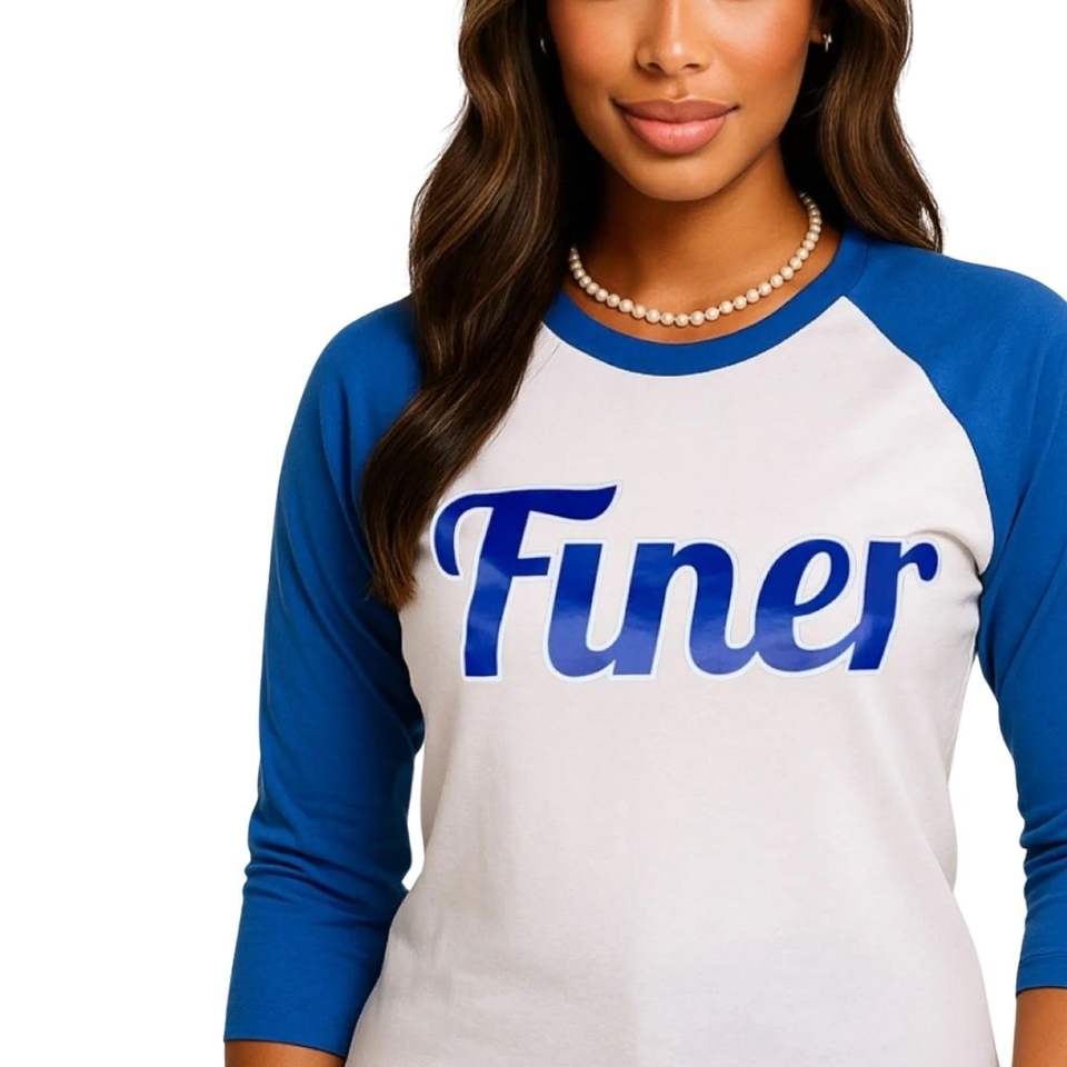 White Finer Baseball Tee Blue Sleeve Sorority Apparel Cotton Collegiate Greek Life Women Fashion Casual Embroidered Top