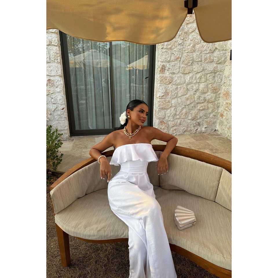 White Floral Fedora Jumpsuit with High Waist Loose Fit Custom Logo Streetwear Style for Summer Autumn Beach Fitness Midi Length