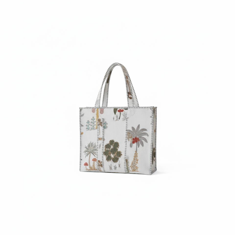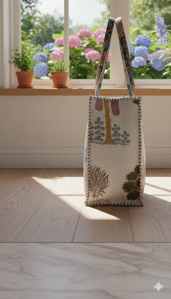 White Floral Handmade Vintage Fashion Lightweight Quilted Tote Bag Ladies Customizable Zipper Shoulder Shopping Bag Canvas