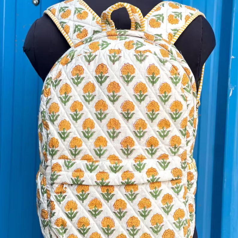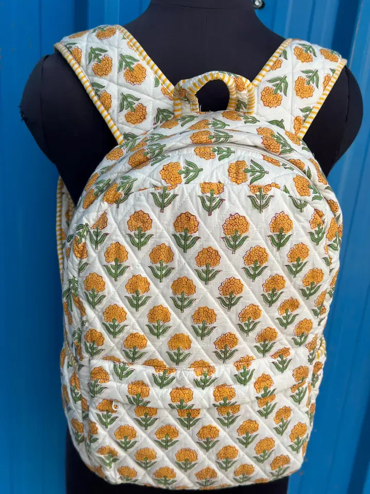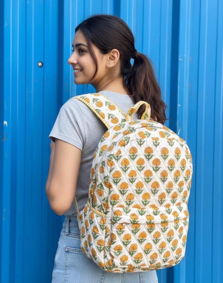White Floral Softback Backpack-Unisex Foldable 10kg Capacity Lightweight Organic Cotton Lining Zipper Closure Luxury Travel
