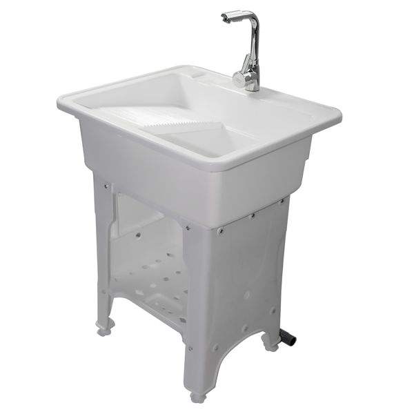 White Freestanding Plastic Utility Sink Drop-Deep Laundry Tub with Inlet/Drain Pipe for Outdoor Use or Utility Purpose