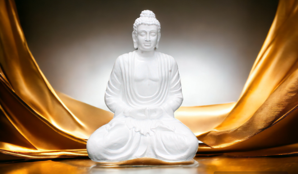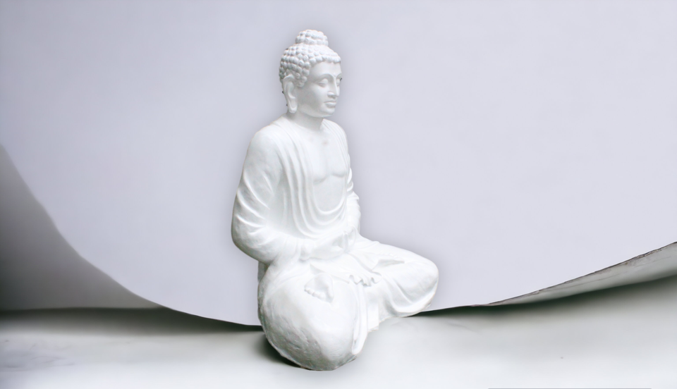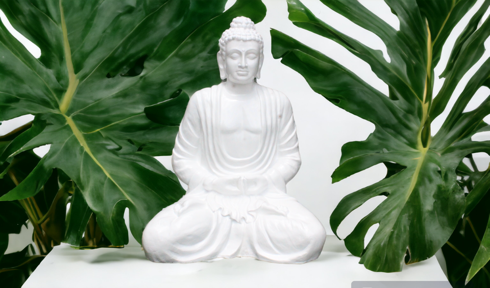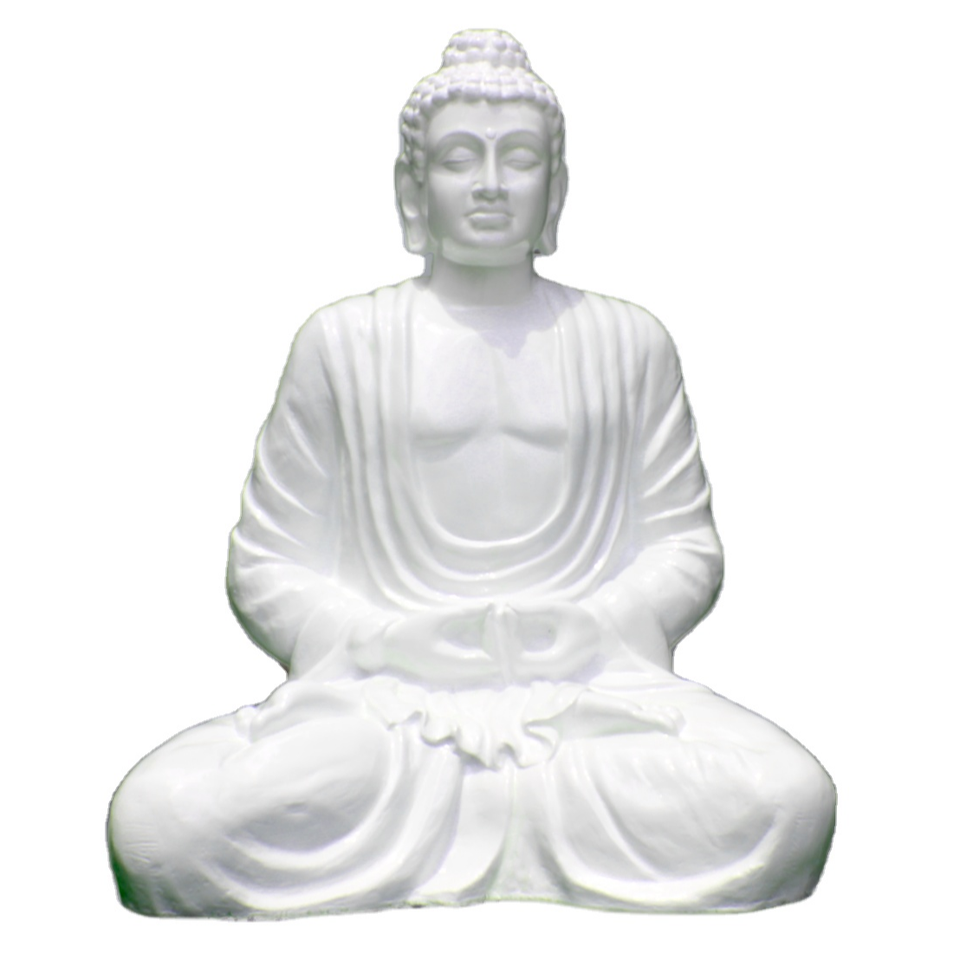 White Glossy 4ft Thick 4-6mm Lightweight Durable Fiberglass Resin Buddha Sitting Statue Indoor/Outdoor Garden Ornament