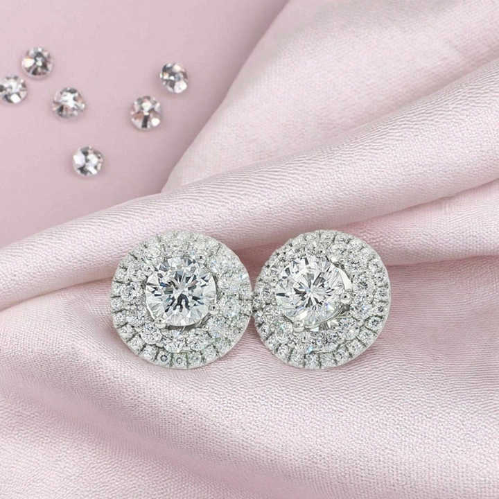 White Gold Custom Handset Luxury Convertible Studs with Round Brilliant Cut and Claw Setting for Women-Gift