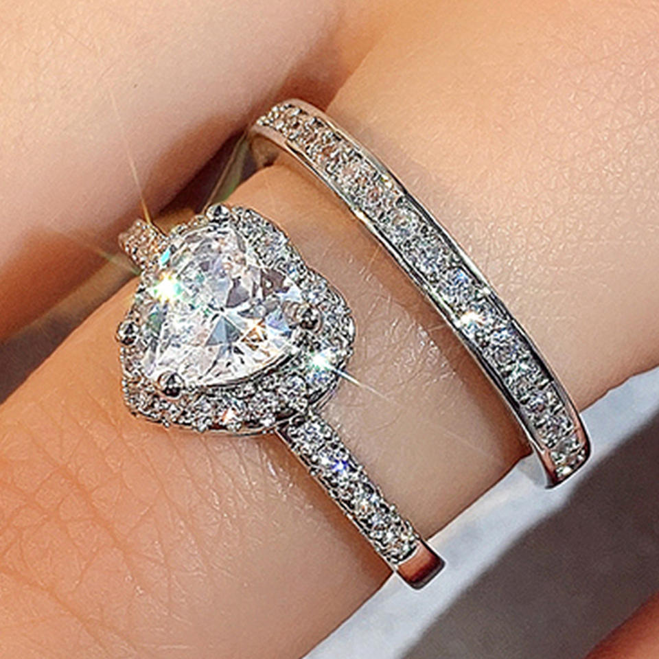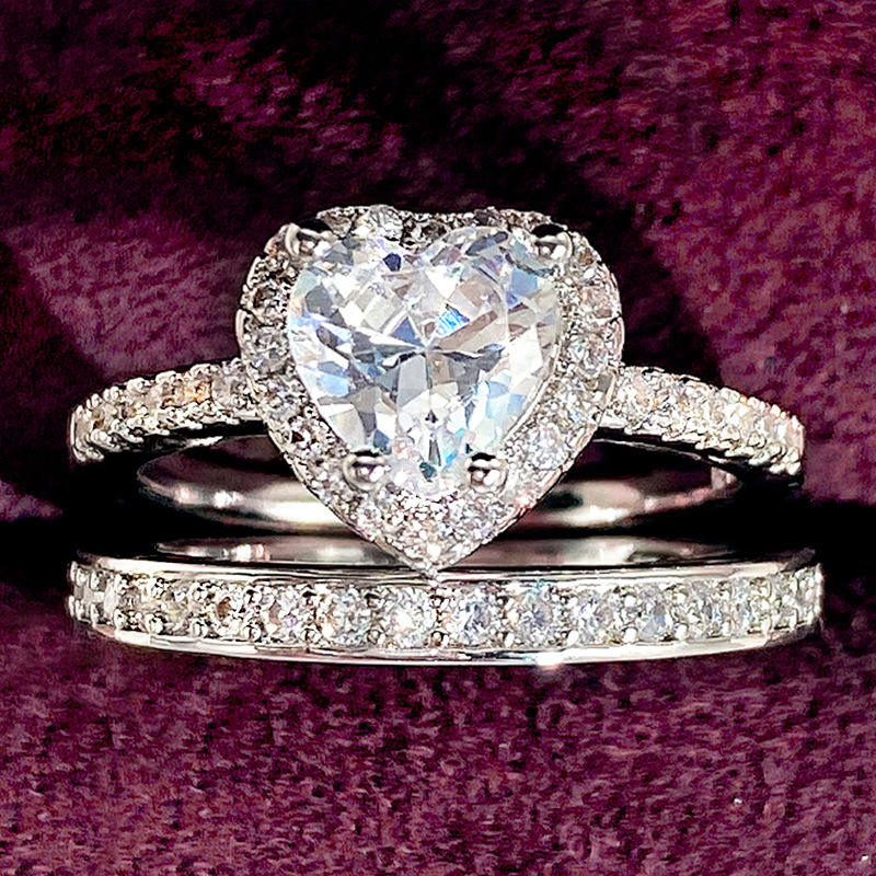 White Gold Heart Cut Diamond Bridal Jewelry Set For Women Romantic Engagement Ring With Halo And Band DJ020