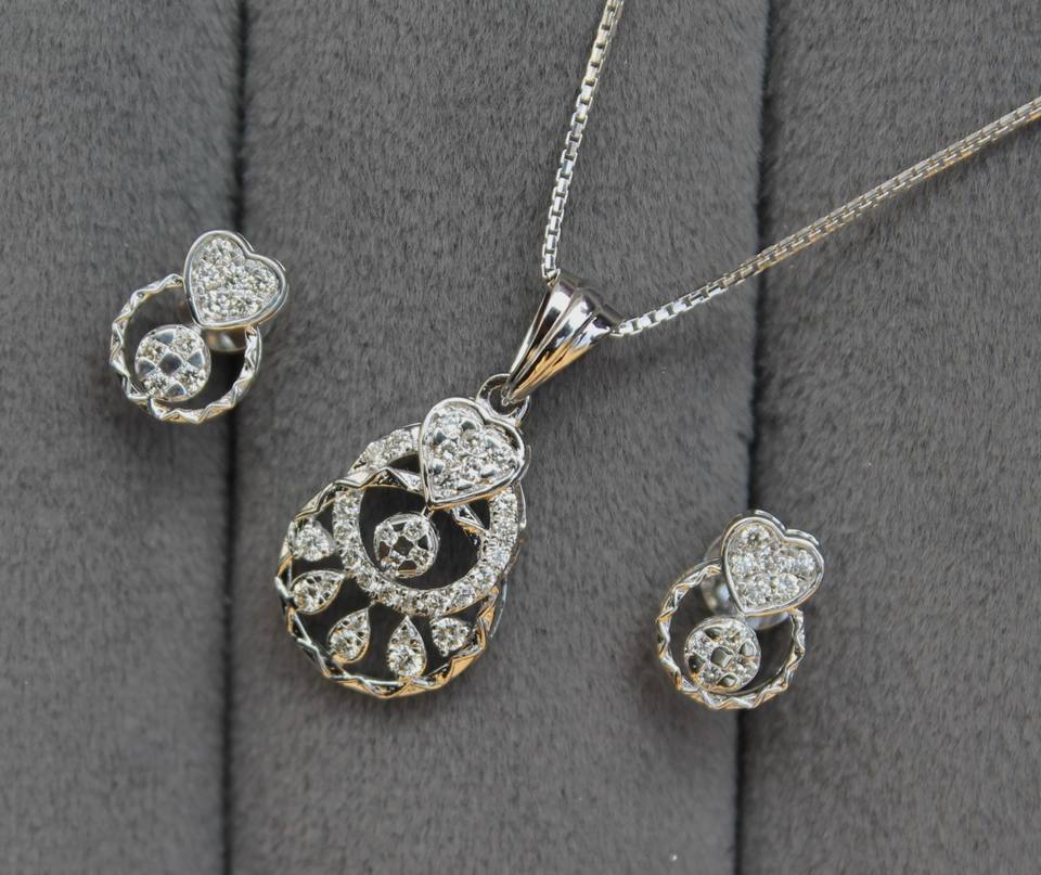 White Gold Heart Shape Jewelry Elegant Romantic Timeless Design with Genuine Diamonds for Everyday and Special Occasions
