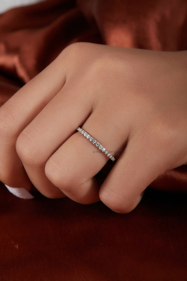 White Gold Moissanite Diamond Eternity Band 1.80 MM Thin Wedding Full Eternity Stacking Timeless Band Ring for Women