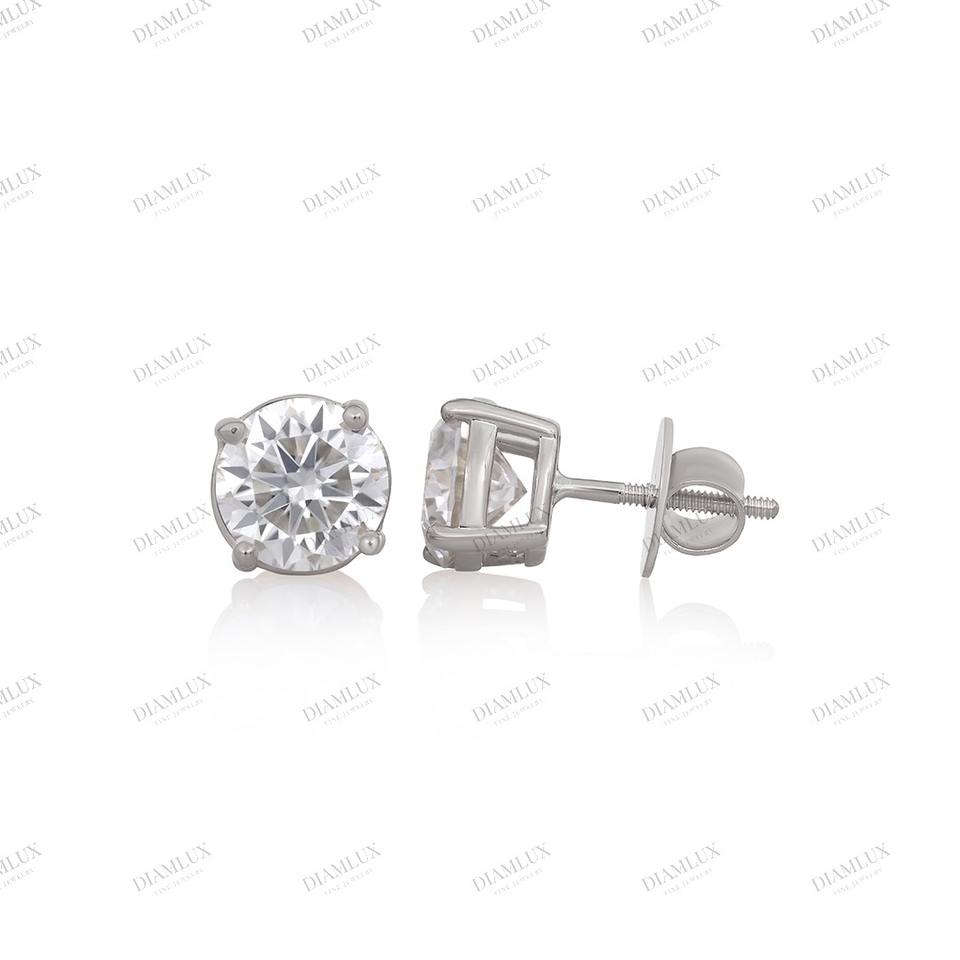 White Gold Round Brilliant Cut Solitaire Diamond Stud Earrings Luxury Women's Jewelry Engagement Wedding Gift Rhodium Plated