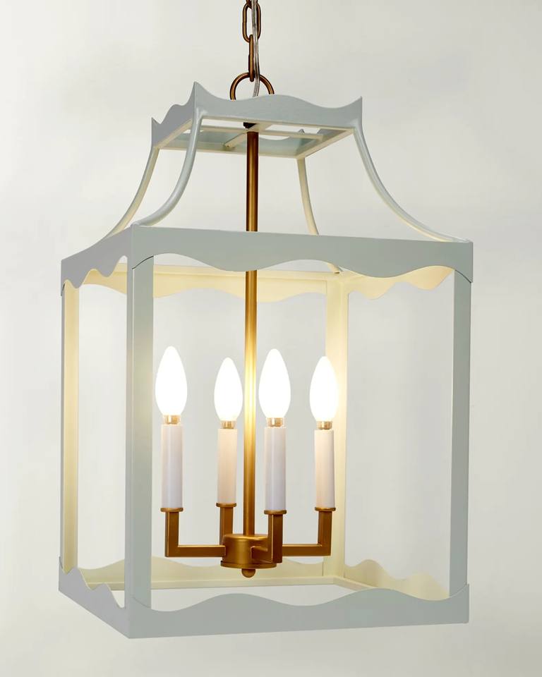 White & Gold Scalloped Lantern Chandelier, Vintage - Inspired Lighting for Foyers & Bedrooms