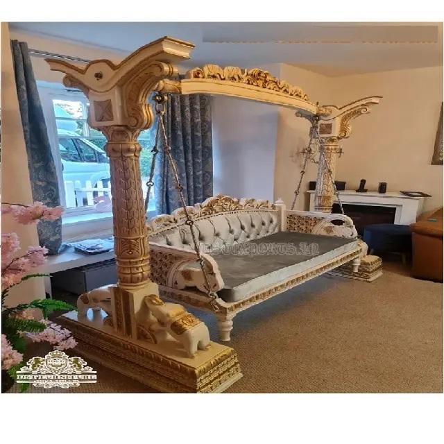 Product name:White Gold Teak Wood Jhula For Lobby Online