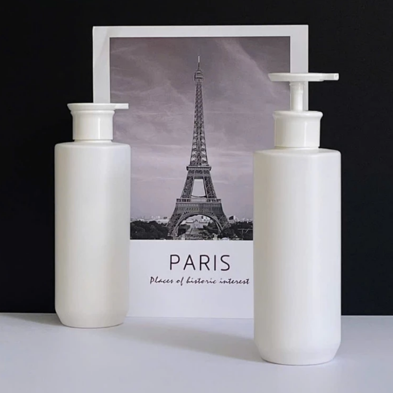 White HDPE Pump Plastic Bottles Horizontal Handle Base 500ml Face Cream Shampoo Custom Color Cosmetic Packaging Pavico Vietnam