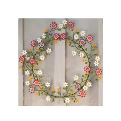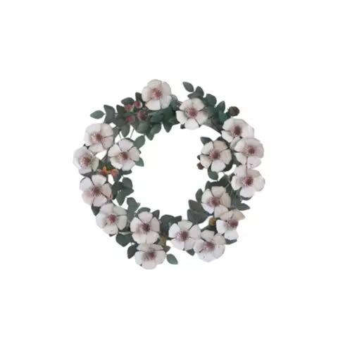 White Hand Painted Flower Metal Wreath Decorative Wall Hanging Wreath for Home Front Door Wall Decorative Metal Wreath