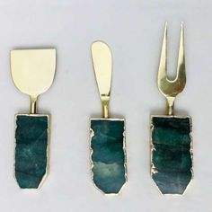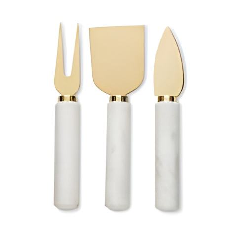 White Handcrafted 3pc Stainless Steel Slicer Cheese Knives Set with Marble and Wood Handle for Serving Cheese Breakfast