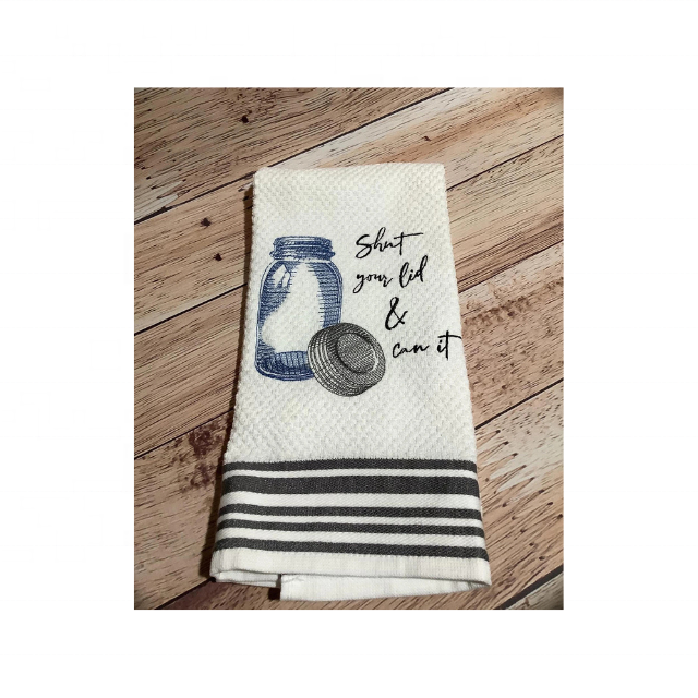 White Herbs in Pot Sage OEM ODM Embroidered 100% Cotton 19x29 Inch 200 GSM Stylish Durable New Hanging Loop Kitchen Towel Sets