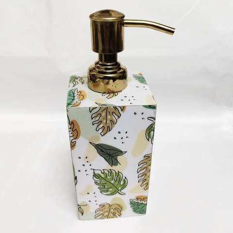 White Home Spa Bathroom Look with Durable Wooden Printed Dispense Bath Accessories Set for Sink Decorative Wooden Bathroom Set