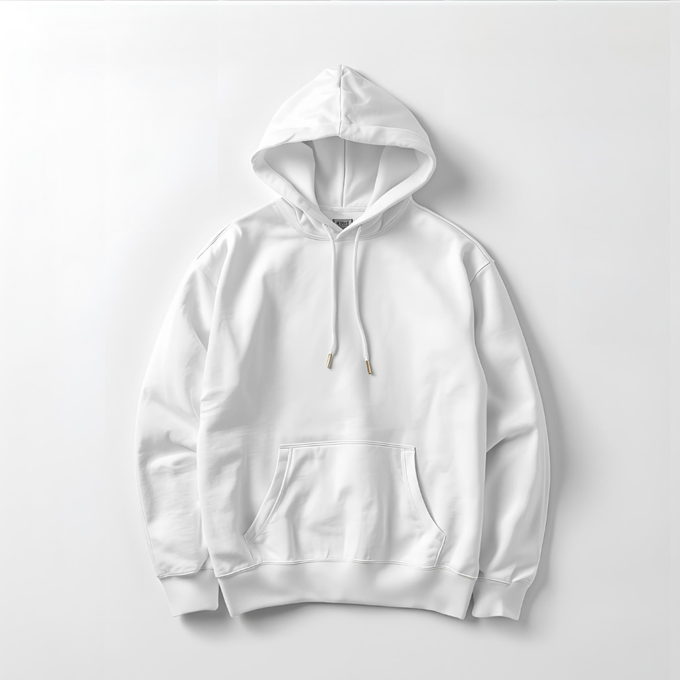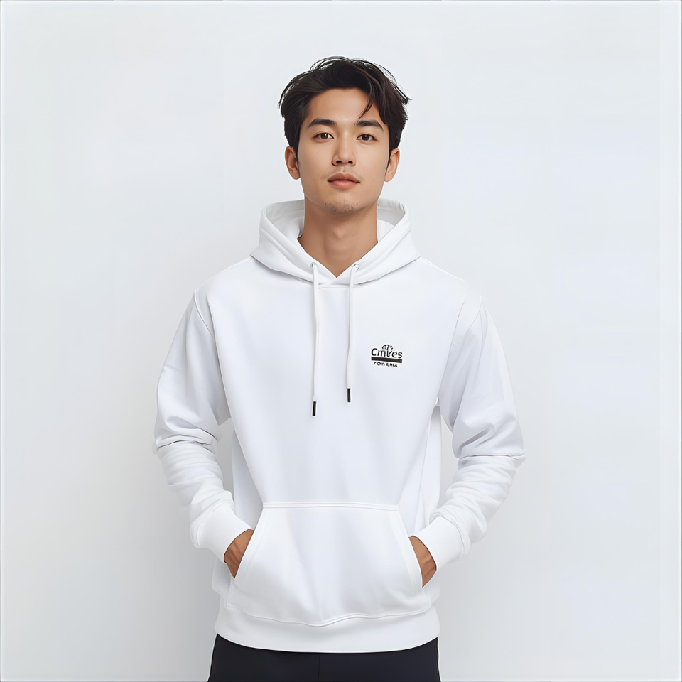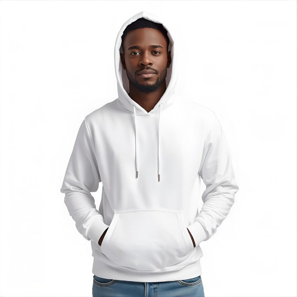 White Hoodies for Men Pullover Cotton Fleece Sweatshirt with Custom Logo and OEM/ODM Private Label Options