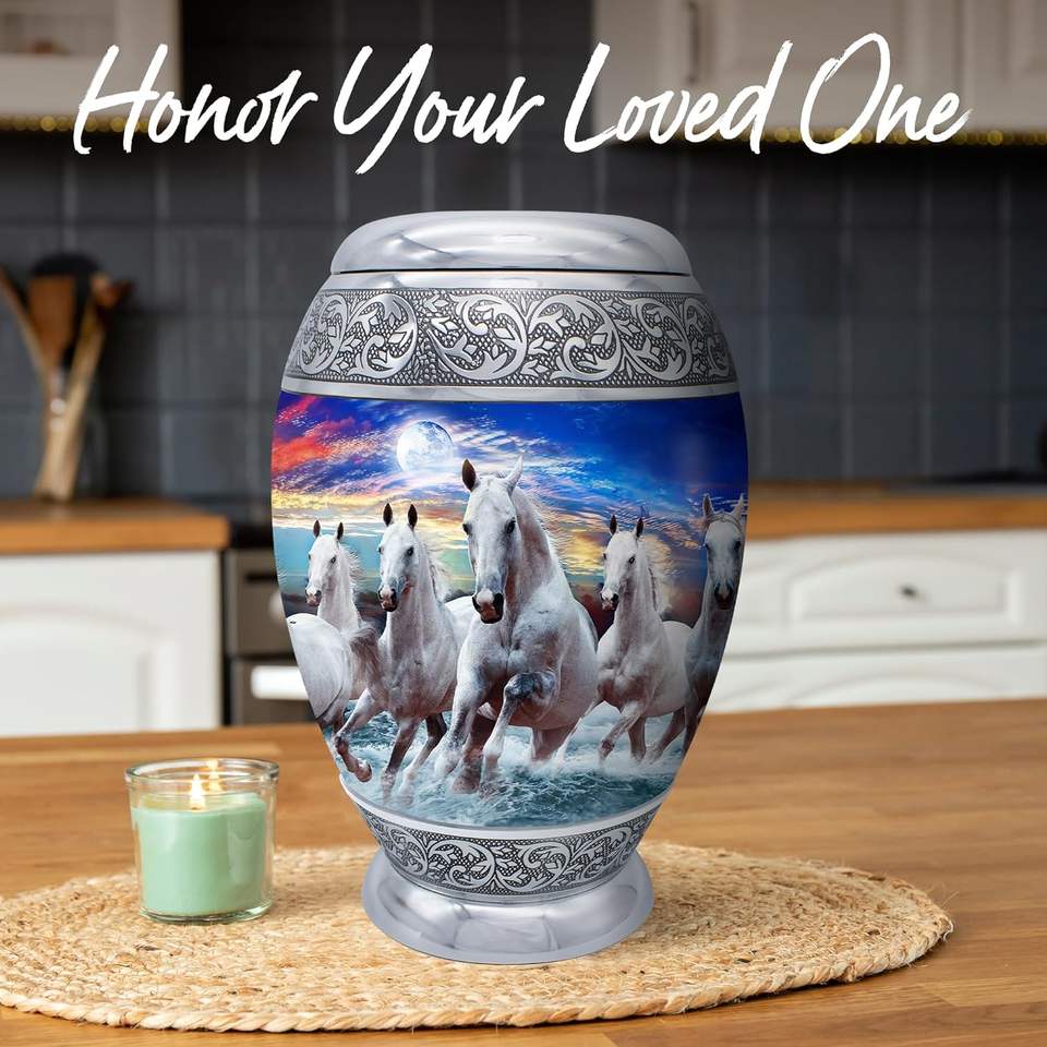 White Horse Urn for Ashes Adult - Large Urn for Human Ashes Adult Men & Women with Bag - Memorial White Urn Horse - Honor Your