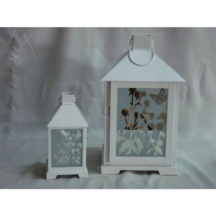 White Hut Shape Iron Lantern with Designer Glass Modern Vintage Premium Quality Iron Lantern by RGN Exports